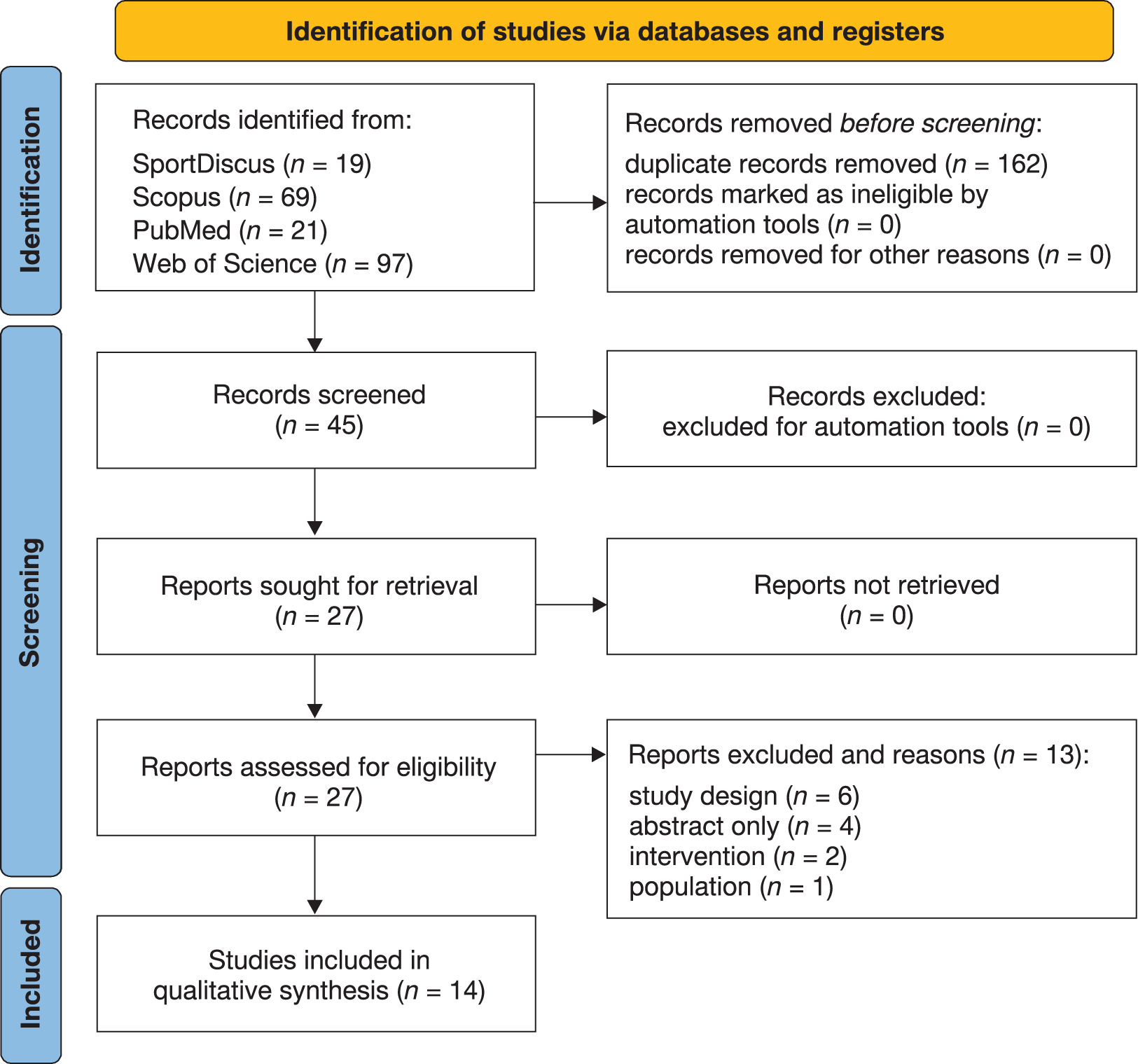 The literature search yielded 206 studies, of which 162 duplicates were excluded via automation tools and 31 were excluded for various reasons. 14 RCTs were included. The reasons for exclusion and the corresponding references are reported in Supplementary Appendix 2. The study selection process is provided in the PRISMA diagram flow (Figure 1).
