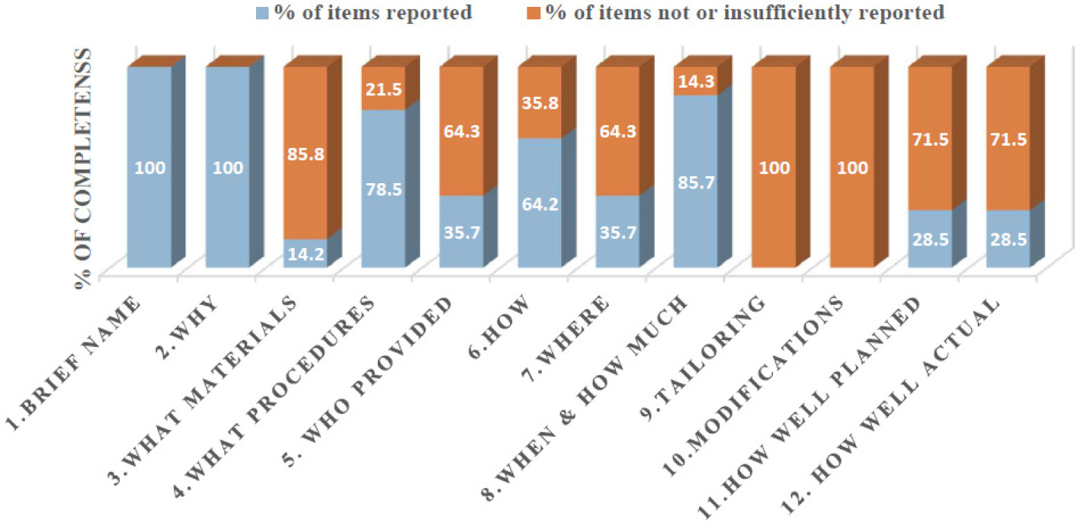 Percentage of completeness of reporting among randomised controlled trials for the Template for Intervention Description and Replication (TIDieR) checklist